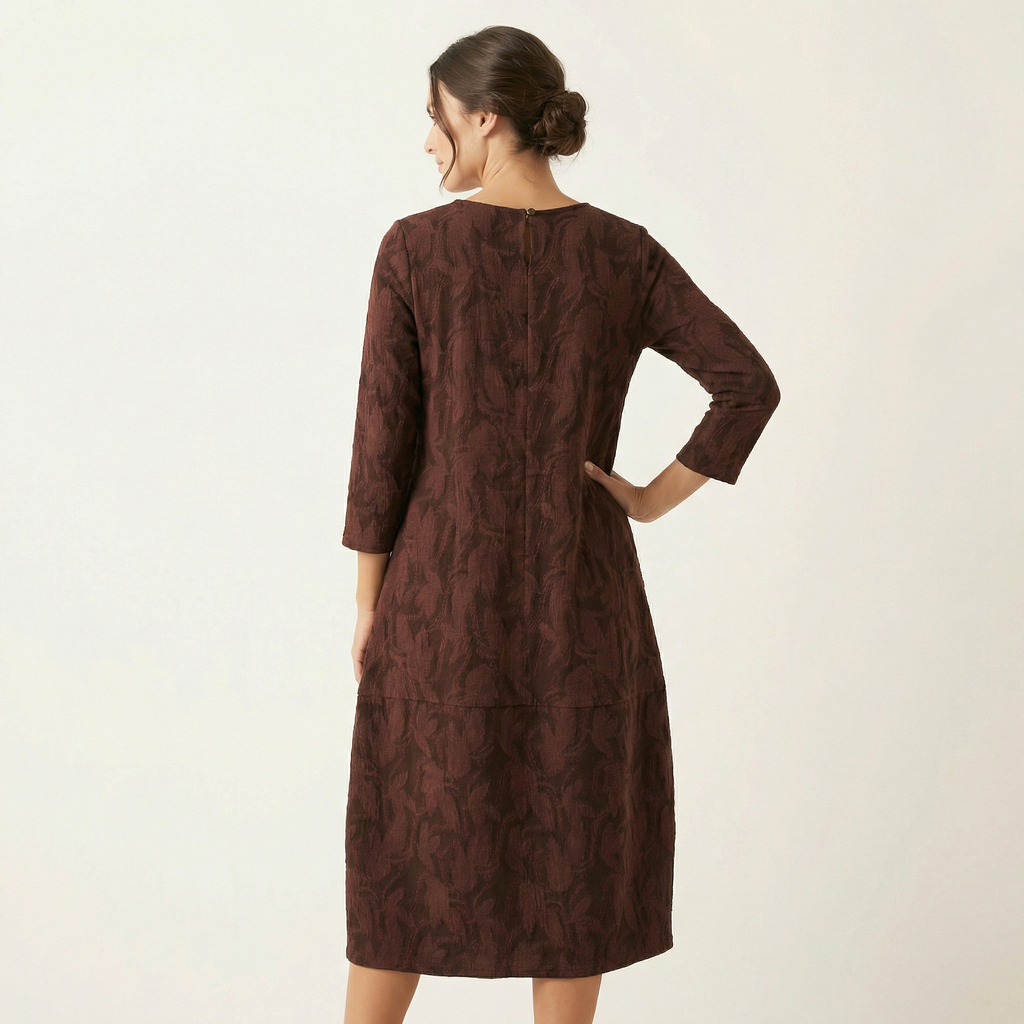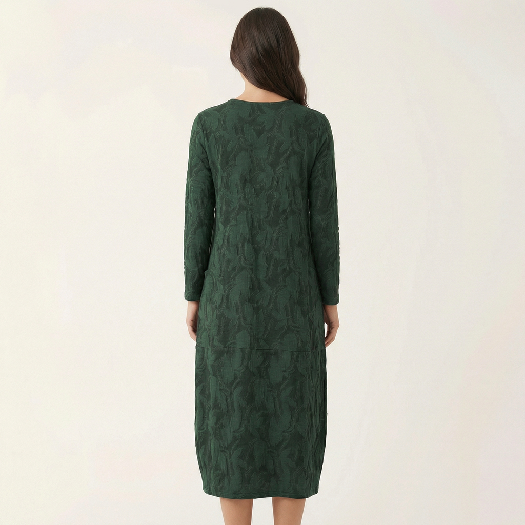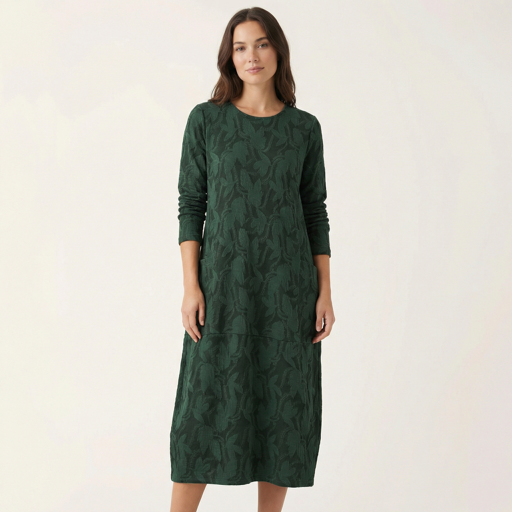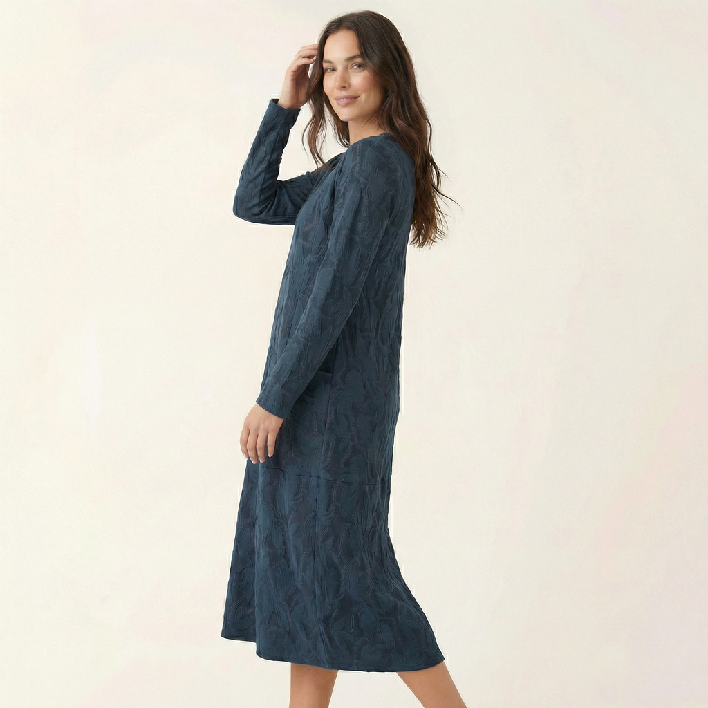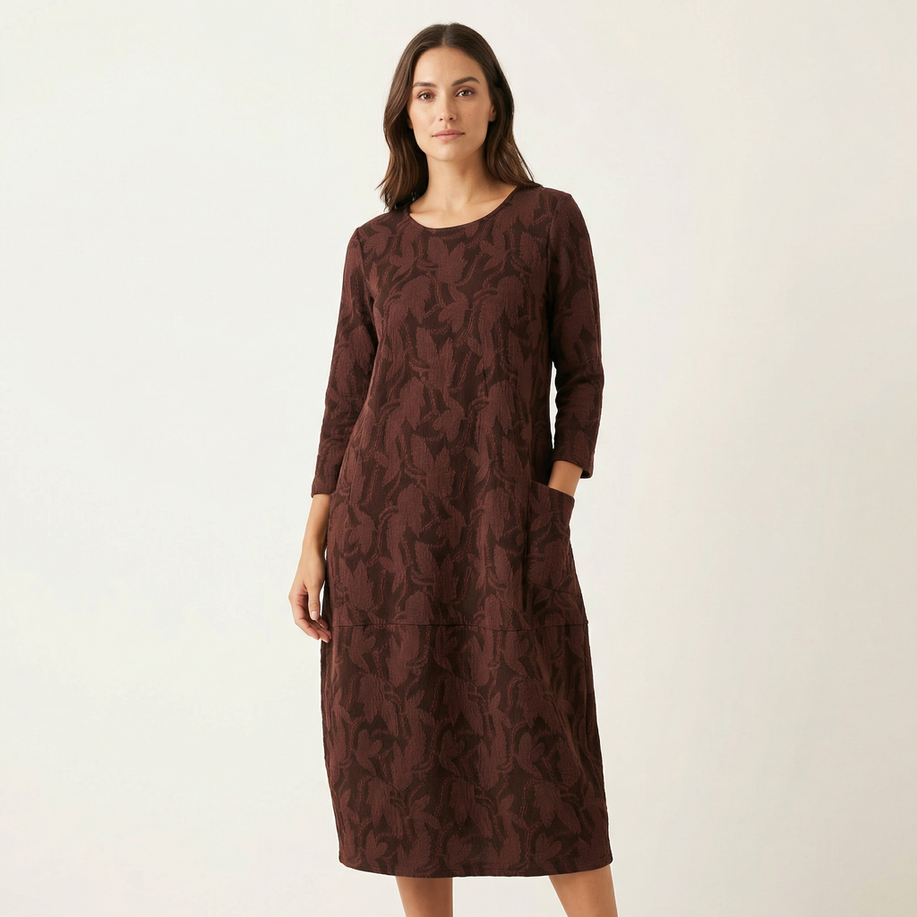 Of je je nu kleedt voor een feest of laagjes toevoegt voor dagelijkse elegantie, de Dina-jurk biedt charme, comfort en eenvoudige verfijning.
